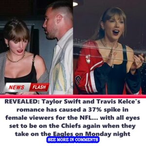 REVEALED: Taylor Swift and Travis Kelce’s romance has caused a 37% spike in female viewers for the NFL… with all eyes set to be on the Chiefs again when they take on the Eagles on Monday night