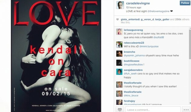 Cara Delevingne and Kendall Jenner share the cover of Love Magazine and it’s pretty racey. The cover features Jenner with her legs wrapped around Delevingne and is due to be released in February.