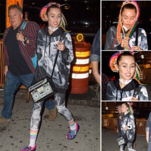 The Wrecking Ball hitmaker, 29, rocks bright yellow slide-on heels on her feet and a tiny furry white skirt with a matching jacket.